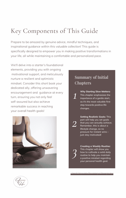 Inside, you’ll be guided through mindful lessons, beginner-friendly routines, and supportive mindset shifts that help you move forward without overwhelm. Each lesson meets you where you are — whether you’re feeling tired, stuck, or simply ready to care for yourself more intentionally.